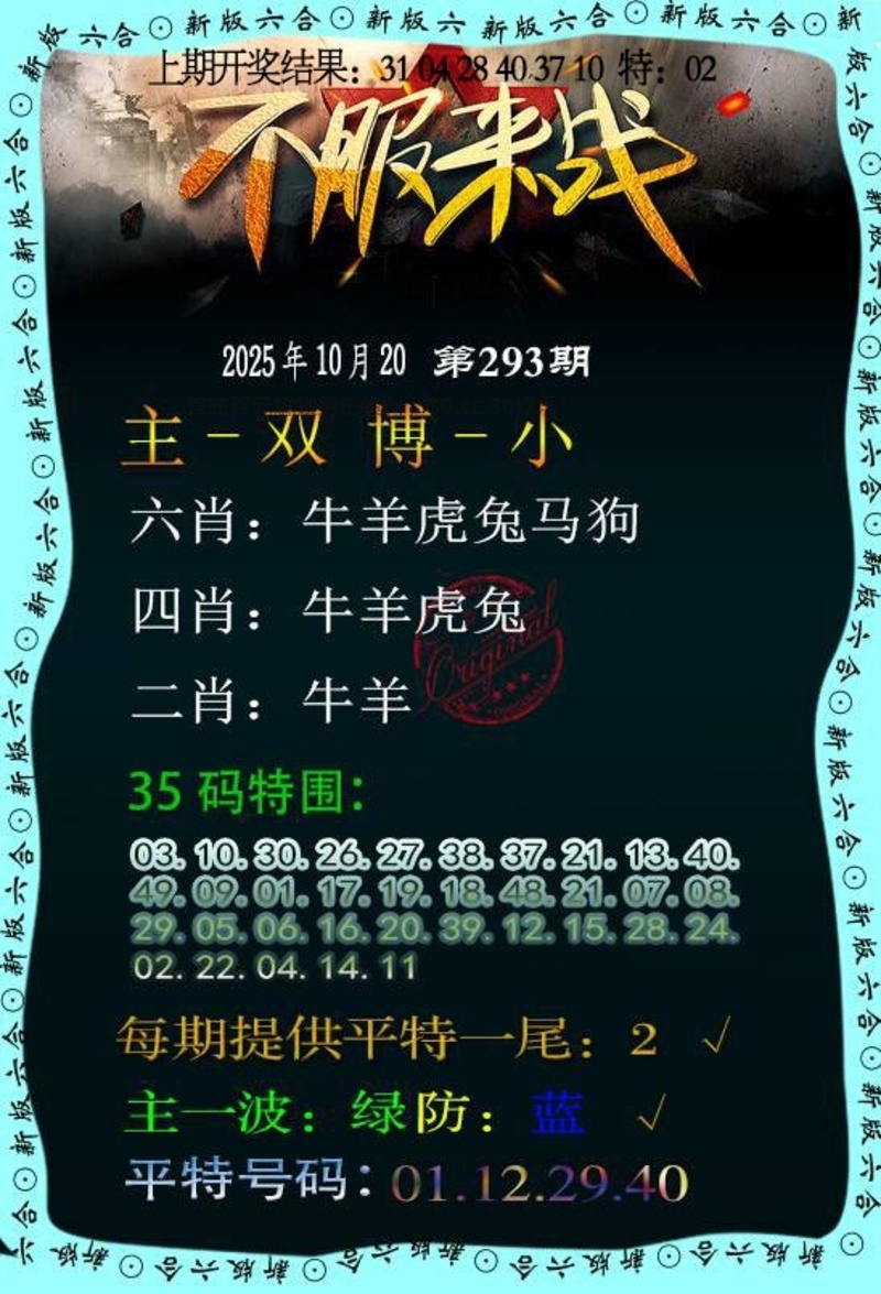 293期: 主推四特:牛羊虎兔 赚钱二肖:牛羊 |